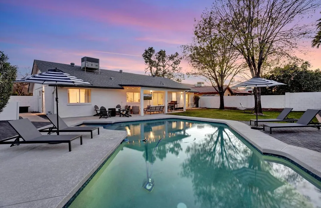 De 2-slaapkamer Slice Of Paradise, Remodel W Free Heated Pool Phoenix villa is binnen 4 km van het Muziekinstrumentenmuseum gelegen en biedt een privézwembad, wat zorgt voor een ontspannen verblijf.